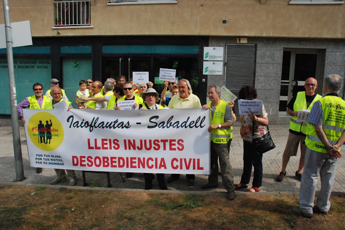 Avui al matí, els Iai@flautes de Terrassa en una acció coordinada hem anat conjuntament a les oficines de la delegació de l'Institut Nacional de la Seguretat Social (INSS) a Terrassa a fer entrega del Manifest en el que mostrem el nostre desacord amb la Reforma de les Pensions.Per veure la noticia cliqueu damunt de la imatge